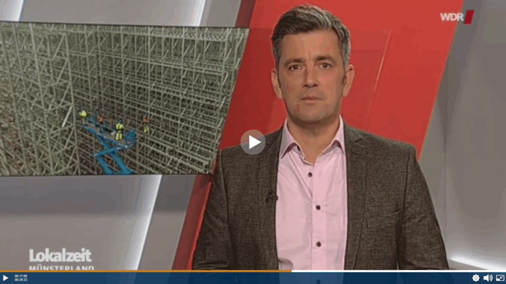 Die Lokalzeit Münsterland berichtete gestern über den Bau des Hochregallagers für die Fa. Salvus in Emsdetten. Den Beitrag können Sie sich hier bis zum 20.11.2017 ansehen. Zum Video: http://www1.wdr.de/mediathek/video/sendungen/lokalzeit-muensterland/video-luftige-baustelle-bei-getraenkehersteller-salvus-in-emsdetten-100.html