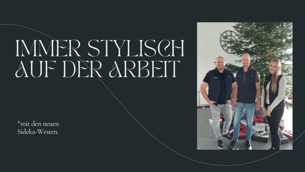 Für unsere Mitarbeiter und Mitarbeiterinnen gab es als vorweihnachtliches Geschenk schon heute eine Kleinigkeit: Stylische Westen mit Sideka-Print. Durchaus auch bürotauglich 😎